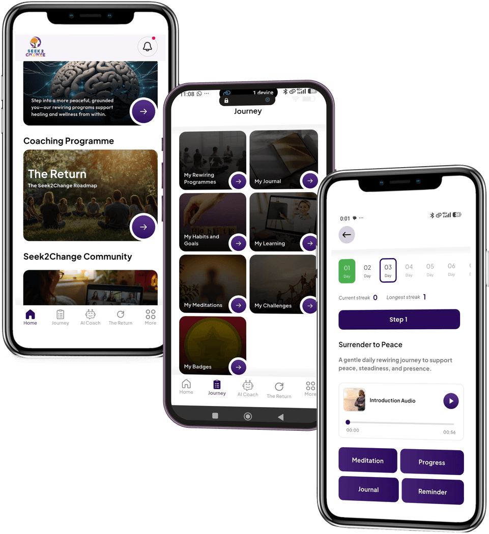 for real humans — not spiritual perfection — Seek2Change offers calm, structured pathways to help you reset emotionally, rewire unhelpful patterns, and live with greater alignment and purpose.
